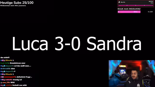 02:49:42Der zweite Teil des Streams ist mathematisch anspruchsvoller und sorgt für Frustration. Es werden Aufgaben wie die Berechnung von (60 / 5) * (1 + 1) gestellt, deren Lösung der Streamer zunächst falsch ansetzt, aber mit Hilfe des Chats korrigiert wird. Weitere Logikfragen, etwa zur Anzahl der Handgriffe bei fünf Personen, führen zu heftigen Reaktionen im Chat. Nach dem Wissenstest folgt der Wechsel zu einem komplett anderen Thema: die Reaktion auf ein komisches 'Frankfurt-Tinder'-Video. Der Streamer kommentiert bizarre Dating-Profilen und verspürt starke Abneigung gegen die gezeigten Charaktere.