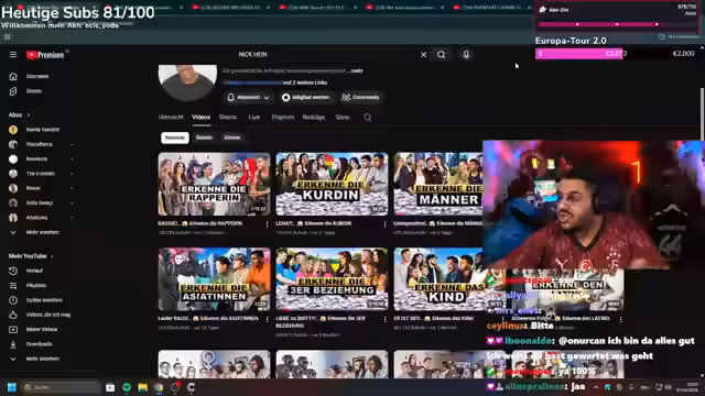 01:57:28Der Streamer beginnt mit einer neuen Video-Reaction, diesmal von 'Nick Hein'. Er warnt vor einer 'Triggerwarnung' und stellt klar, dass Beleidigungen im Video auf eine bestimmte Weise nur mit Früchten erfolgen. Es geht um eine Doku-Folge, in der vier Freunde einen verdächtigen Berufsschüler namens Colin ins Visier nehmen, der ein starkes Interesse an sehr jungen Mädchen haben soll. Die Gruppe plant eine Konfrontation mit ihm in einer Comedy-Show, um ihn zur Rede zu stellen.