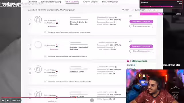 03:55:15Es wird ein neues Spiel namens 'Legacy' gestartet, bei dem es darum geht, die ethnische Herkunft von Personen in einer Jury anhand von Fragen zu erraten. Die erste Person ist eine Kurdin namens Sava. Der Streamer stellt gezielte Fragen zu ihrer Herkunft, Namen und Kultur, um sie zu identifizieren. Die Runde wird interaktiv, als der Streamer die Chatzuschauer abstimmen lässt, ob die Person die Wahrheit sagt und wie schwer es ist, die Herkunft zu erraten.