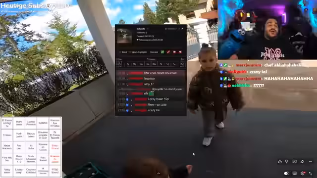 01:55:27Streamer und die Familie besuchen einen Bauernhof, wo sie Kühe sehen. Streamer zeigt, wie die Kühe gefüttert werden, und die trinken aus einer Tränke. Er erwähnt, dass Nidal den Vögeln hinterherrennt und dadurch für Unruhe sorgt. Streamer erklärt, dass die Kuh-Sounds im Video gefakt sind, weil es in der Nähe keine Kühe gab.