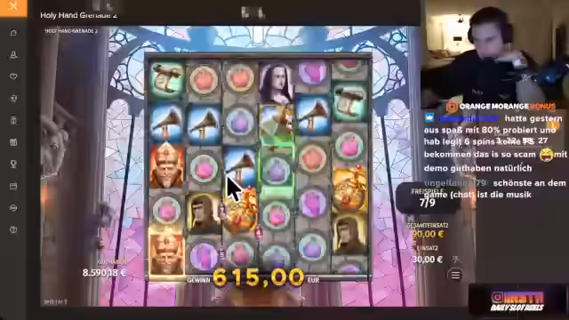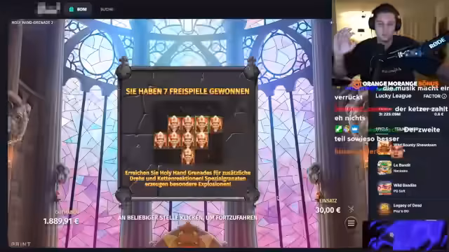 00:55:56Nach einem weiteren Abbruch bei Zeus vs. Hades wechselt der Streamer zum Slot Holy Grenade. Er erkundigt sich bei der Community, ob die alte oder die neue Version des Slots gespielt werden soll, und entscheidet sich für die neue. Das Ziel ist es, Freispiele zu aktivieren und das Potenzial für hohe Gewinne auszuschöpfen.