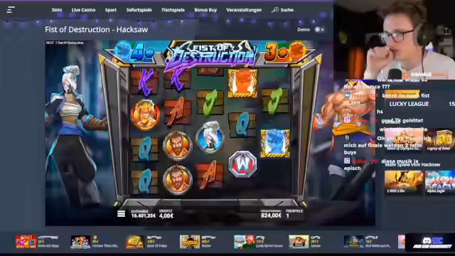 00:16:43Der Streamer kündigt ein Slot-Turnier an, bei dem 16 Teilnehmer per Nightbot ausgelost werden. Jeder Teilnehmer wählt für die erste Runde einen Slot (z.B. 'Gates of Olympus' oder 'Dog House') aus, für den 400 € Freispiele gekauft werden. Das Turnier folgt einem einfachen Wettsystem: Der Teilnehmer mit dem höheren 'Paid'-Betrag gewinnt die Runde und rückt in die nächste Runde vor. Das Finale wird als 'All-In' (alles auf einmal) durchgeführt. Der Gewinner erhält Essen auf den Streamer, z.B. Lieferando- oder Playstation-Gutscheine.
