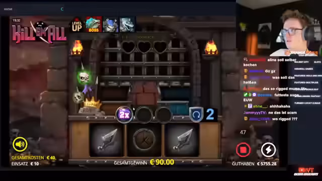 02:00:16Trotz längerer Verluste wird eine strategische Erhöhung der Einsätze im Kill'em All Spiel forciert, mit dem Ziel, durch hohe Risiken auf einen großen Treffer zu warten. Ein Gespräch über Einkaufsmöglichkeiten (Rewe-Gutschein) entsteht, während der Streamer die Bosse und Lebenspunkte analysiert. Die Stimmung wechselt zwischen Frustration und Hoffnung, während ein erneuter Test von Circle of Life erwogen wird.