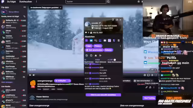 02:48:29Nach einem vier Tage andauernden Freispiel-Durststrecke bei einem Slot-Spiel kündigt der Streamer die Auslosung des Adventskalenders für den nächsten Tag an. Zudem wird auf neue Inhalte auf dem 'Orange Bonus'-YouTube-Kanal hingewiesen, dessen Videos jedoch aufgrund von Einschränkungen immer wieder gelöscht werden. Der Hauptkanal bleibt 'orangemorange', und es wird ein Link zum alternativen Streamingdienst Kick im Chat erwähnt.