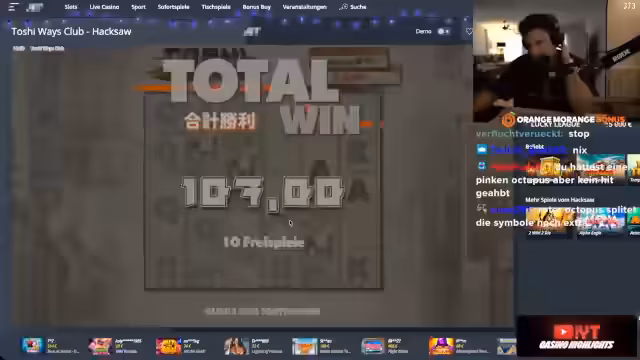 00:46:05Beim Spielen von 'Hugo’s Goal' gewinnt der Streamer Freispiele auf 60-Euro-Einsatz. Durch eine Kette von Verlängerungen („Fuchs“-Symbol) steigt der Multiplikator auf 21x an, was zu einem hohen Echtgewinn führt. Er plant, bei Erreichen von 10.000 Euro Raw Money auszuzahlen. Währenddessen bestätigt er eine PlayStation-1-Nostalgie und kündigt einen 24-Stunden-Stream im März an.