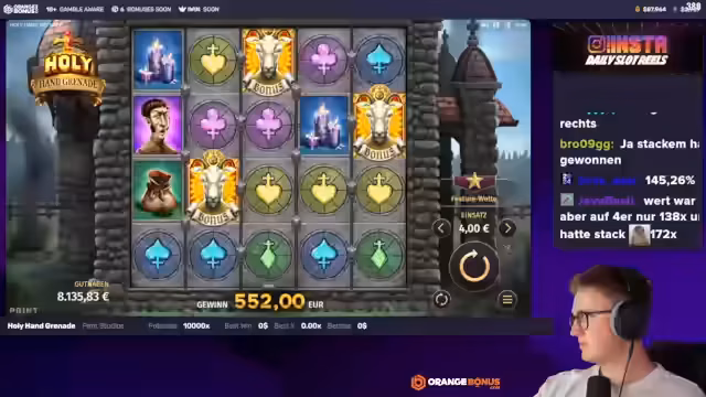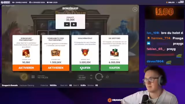 00:16:14Das Turnierformat wird detailliert erklärt: Es finden 16 Duelle statt, die sich in jedem Durchlauf halbieren. In jeder Runde kaufen die Teilnehmer für 300 Euro Freispiele in einem von ihnen gewählten Spiel. Derjenige, der den höheren Wert erzielt, zieht eine Runde weiter. Die Teilnehmer werden durch Eins im Chat ausgewählt.