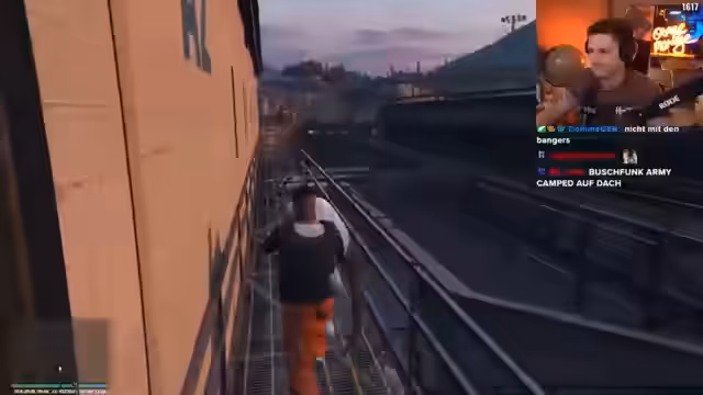 01:28:48Während der Missionen kommt es zu intensiven Verfolgungsjagden mit der Polizei. Die Gruppe wird von mehreren Streifenwagen und einem Hubschrauber verfolgt. In der chaotischen Flucht versucht der Streamer, die Situation zu kontrollieren, indem er seine Crew anweist, abwesige Polizisten zu beseitigen und die Verfolgung umzukehren, was zu einem actionreichen und unkoordinierten Fluchtmanöver führt.