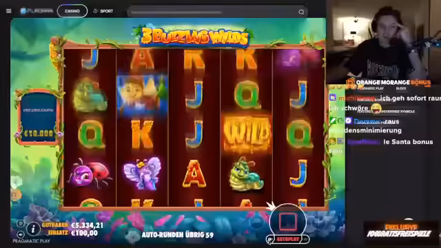 00:55:15Der Streamer entscheidet sich, Freispiele in 'Wild West Duells' für 5,60 Euro zu kaufen. Er erklärt, dass man Goldsäcke auf jeder Walze benötigt, die zufällig auslösen können. Er hofft auf Premium-Symbole und hohe Multiplikatoren, um einen großen Gewinn zu erzielen. Während der Freispiele fragt er die Zuschauer, wer am Vortag bei den 'Streamer Cases' dabei war, wo sie aus 4.000 oder 5.000 Euro 38.000 Euro bei einem 1-gegen-3-Spiel auf Empire gezogen haben. Er lässt die Zuschauer die Positionen für die Wilds wählen, um das Spiel interaktiver zu gestalten. Nach mehreren Runden mit Wilds und Multiplikatoren gelingt es ihm, die Balance wieder auf 10.000 Euro zu bringen. Er überlegt, ob er das Spiel wechseln soll, da er das Gefühl hat, dass es nicht mehr viel Potenzial bietet, aber er bleibt zunächst dabei, in der Hoffnung auf weitere Gewinne.