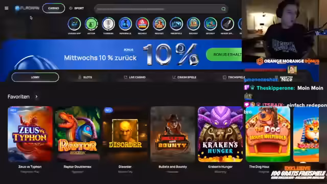01:24:49Die 10.000er Bullet bei Flagman wird abgeschlossen, und der Streamer gibt bekannt, dass sie „wieder super funktioniert“ hat, was ironisch gemeint ist, da es offensichtlich zu Verlusten kam. Er weist die Zuschauer auf den Bonuscode „100“ im Chat hin, der 100 kostenlose Freispiele ohne Einzahlung ermöglicht. Er betont eindringlich, niemals eigenes Geld einzuzahlen und erklärt, dass Gewinne aus diesen Freispielen ausgezahlt werden können, was theoretisch „free money“ bedeutet. Die Seite ist aus rechtlichen Gründen in Deutschland, Österreich und der Schweiz nicht aufrufbar, aber er erwähnt, dass es andere Wege gibt, darauf zuzugreifen. Anschließend wird auf die Plattform „Beef“ gewechselt, wo eine 5.000 Euro Bullet gespielt wird, mit der noch eine „Rechnung offen“ ist, bevor es zu Empire geht.