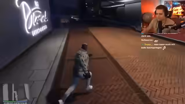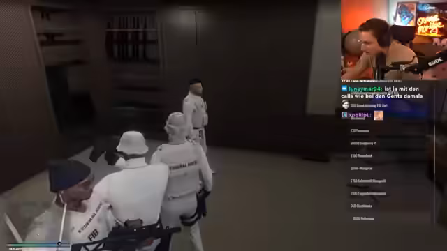 01:41:42Im neuen Rollenspiel-Hauptquartier führt der Streamer eine langwierige und erfolglose Suche nach einem Ausweg durch. Er nutzt verschiedene Methoden, um die unübersichtliche Gebäudestruktur zu verstehen und eine Fluchtmöglichkeit zu finden. Nach zahlreichen gescheiterten Versuchen und der Hilfe im Chat findet er schließlich eine Möglichkeit, indem er über ein Dach springt, was jedoch aufwändig und ohne Garantie auf Erfolg ist.