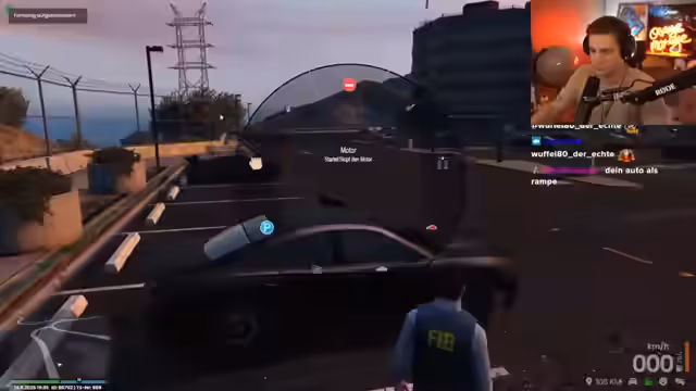 01:35:15Die Szene wechselt zu einem Rollenspiel im Stil eines Grand Theft Auto-Servers. Der Streamer agiert als Polizist und ist bemüht, aus seiner Basis, dem FAB-HQ, herauszukommen, was sich als komplex und frustrierend erweist. Parallel dazu erreicht ihn ein Anruf von seiner Tochter Linnea, die nach langer Abwesenheit zurück ist. Das Gespräch ist von einer aufkeimenden familiären Spannung geprägt, die sich in einer romantischen Beziehung zwischen Streamer und Tochter im Rollenspiel fortsetzt.