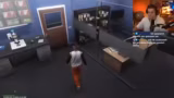 01:28:31Mithilfe von Chat-Anweisungen und einem Unterstützer gelingt es dem Streamer, sich in die nächste Zelle zu teleportieren. Eine Rettungsaktion durch einen anderen Spieler, der mit einem Verbandskasten erscheint, scheitert jedoch. Stattdessen kommt es zu Chaos und Schüssen, als der verhaftete Spieler plötzlich von einem anderen Wächter niedergeschossen wird, was die Szene unübersichtlich macht.