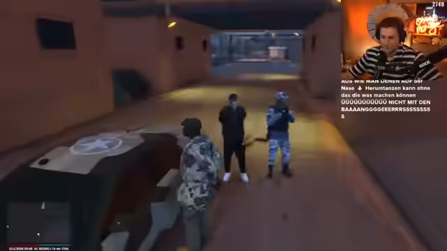 03:10:33Die Gruppe befindet sich in einer heiklen Situation nach einem Absturz. Es kommt zu einem bewaffneten Konflikt mit der Armee, bei dem mehrere Verletzte zu beklagen sind. Während des chaotischen Geschehens werden Waffen wie der Dietrich benutzt, um sich aus Handschellen zu befreien, was zu Fluchtversuchen führt. Die Armee scheint überfordert und macht laut Streamer 'korrupte' Fehler. Die Situation eskaliert, als ein Agent am Boden liegt und Hilfe benötigt, während der Streamer versucht, die Oberhand zu behalten.