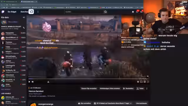 02:45:44Der Streamer plant eine Geiselnahme in einem SG-Sturm und koordiniert seine Truppe. Er fordert die Teilnehmer auf, im Chat zu kommunizieren, um sicherzustellen, dass alle bereit sind und die richtigen Ausrüstungen wie Langwaffen (LW) und Westen mitbringen. Es besteht das Ziel, echte Geiseln zu nehmen und Geld als Lösegeld zu fordern. Der Streamer betont die Dringlichkeit der Situation und ruft dazu auf, sich sofort zu melden und in seinen Loot-Wagen einzusteigen.