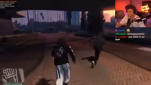 01:30:09Der Streamer und seine Gruppe führen verschiedene Interaktionen durch, die unter der Bezeichnung Stupsi-RP firmieren. Dabei werden Spieler angelichen, um deren Reaktionen zu testen. Die Situation eskaliert, als ein Spieler überfahren wird (VDM), was verboten ist. Nach einer Verfolgungsjagd kommt es zu einer Konfrontation, bei der ein Rapper gefangen genommen und verprügelt wird.