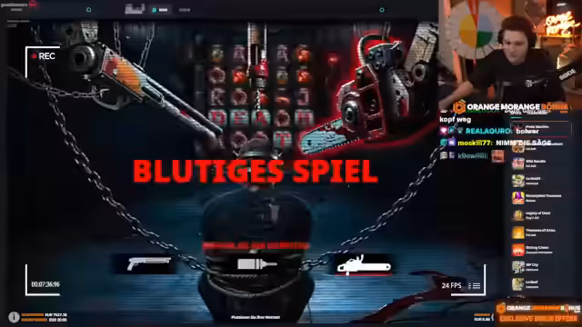 00:54:11Ein neues Spiel namens "Freak Machine" wird gestartet. Der Streamer erkundet dessen einzigartiges Spielprinzip, bei dem eine Fortschrittsleiste mit blutigen Symbolen gefüllt werden muss, um einen großen Gewinn auszulösen. Er interagiert stark mit dem Chat, um das Spiel zu verstehen und nutzt die Vorschläge der Community für seine Spielzüge.