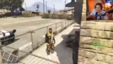 03:14:52Die Situation spitzt sich zu, als die Armee mit einer Hydra in die Verfolgungsjagd eingreift. Der Streamer versucht zu verhandeln, droht mit einer Hubschrauber-Bombe und wechselt erneut das Fahrzeug. Nach einer weiteren Verfolgungsjagd, die mit einem Unfall endet, wird der Streamer von der Army festgenommen und aus dem Fahrzeug gezerrt. Er wird anschließend verhört und ihm werden illegale Aktionen vorgeworfen.