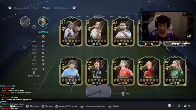 00:17:38Der Streamer diskutiert aktuelle Evo-Möglichkeiten, insbesondere für Tiki-Taka-Spieler. Es geht um strategische Entscheidungen, welche Karten man in Evos steckt und welche Playstyles man auswählt. Dabei werden verschiedene Karten wie Wilson, Marcelo und Pina bewertet. Die Chancen, seltene Karten zu ziehen, werden analysiert, und es wird über Pack-Strategien gesprochen, um den TOTY-Zugang zu maximieren.
