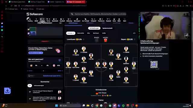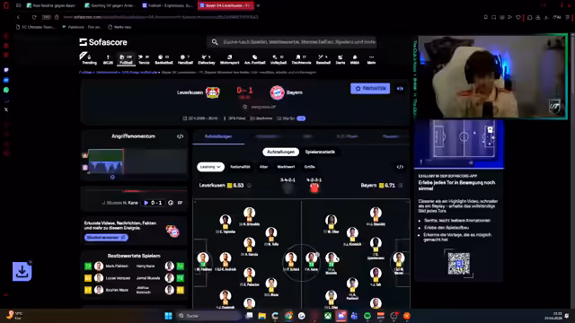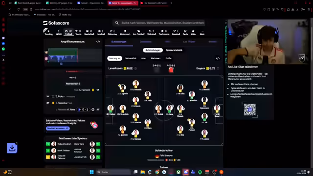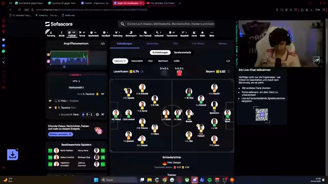 00:11:07Der Streamer reflektiert über das Ausscheiden im letzten Champions-League-Spiel gegen Leverkusen und betont, dass es nicht um Revanche geht, sondern um die aktuelle Leistung. Er erwähnt Erfolgserlebnisse in den letzten sechs Spielen gegen Leverkusen und stellt klar, dass jedes Spiel eine neue Herausforderung ist. Die personelle Stärke der Teams wird analysiert, wobei Davis als wiedererstarkt beschrieben wird. Es wird auch die positive Entwicklung im Verein erwähnt, einschließlich des Erfolgs der Frauenmannschaft, die als Vorbild dienen kann. Der Streamer zeigt Respekt für die Gegner, aber auch die Zuversicht, das Spiel zu gewinnen.
