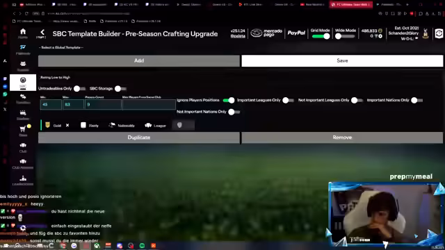 00:45:21Der Streamer versucht vergeblich, die SBC für den 99er SPC Grießmann auf einem zweiten Account zu erstellen. Er stößt auf erhebliche technische Hürden, da das Laden der Crafting-Template-Seite extrem lange dauert und er nicht die erforderlichen Goldkarten besitzt, um die SBC abzuschließen. Die anfängliche Freude über die neue Karte weicht großer Frustration, da er die Ressourcen und die Performance des Spiels als unzureichend empfindet.