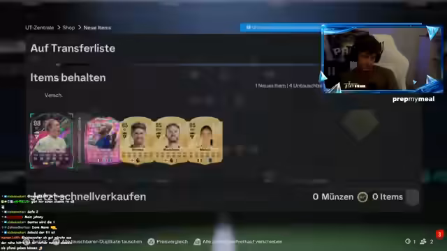 00:00:03Der Stream startet mit einer Diskussion über den DFB-Pokal und die Möglichkeit, die Spiele im ZDF zu sehen. Der Streamer blickt auch auf die neuesten Entwicklungen im FC 25, insbesondere die neuen SPC-Karten und das Crafting-System. Die neuesten Transfergerüchte, wie der Wechsel von Lohmann, werden angesprochen und es herrscht Frustration über das Ende der TOTS-Karten und den Start der neuen Saison erst im Oktober.