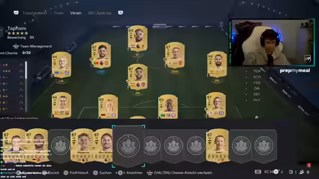 00:02:05Zu Beginn werden die aktuellen Squad-Battles analysiert, da sich der Streamer mit seinem Team auf den Knockout Cup vorbereitet. Die Diskussion konzentriert sich auf die Notwendigkeit, das Team umzubauen, indem Leihspieler eingesetzt werden. Es wird kritisiert, dass die Leihspieler nerven, und es wird überlegt, welche Spieler herausgenommen und wer ersetzt werden muss, wobei eine Obergrenze von 90 overall besteht.
