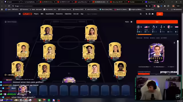 00:58:48Es wird erwähnt, dass das Team erst aufgebaut wird und man auf den Verkauf von Gegenständen wartet. Es wird überlegt, ob man auf den zweiten Account gehen soll, um Münzen zu verdienen. Es wird sich über das Team of the Week beschwert, das als "kompletter Arschfick" bezeichnet wird. Can Ozone und Conny Leimer werden als einzige coole Spieler im Team of the Week genannt. Es wird überlegt, Usun ins Team zu holen, der als potenziell gute Evo-Karte angesehen wird. Es wird sich über ein FIFA-Tor beschwert, bei dem man nichts drücken kann und der Ball einfach zwischen den Beinen angeklemmt wird. Es wird sich darüber beschwert, dass der Brockball immer abfuckt. Es wird sich darüber beschwert, dass RTG dieses Jahr tot ist. Es wird über die schlechten Belohnungen in den letzten Jahren gesprochen. Es wird überlegt, Alvarez ins Team of the Week zu holen. Es wird sich über das langsame Gameplay beschwert. Raoul wird als schlecht bezeichnet. Es wird sich darüber beschwert, dass man den Ball immer wieder bekommt. Es wird sich darüber beschwert, dass das Gameplay langsam ist. Raoul ist schlecht. Es wird sich darüber beschwert, dass der Ball immer wieder zum Gegner kommt. Es wird sich darüber beschwert, dass der X-Pass auf den Stürmer nicht ankommt. Es wird überlegt, das HeroPack auf Französisch zu machen, um auf Kompensation zu hoffen. Es wird sich darüber beschwert, dass Pay-to-Win im Spiel spürbar ist. Es wird überlegt, Swanson zu kaufen, der als Zeichen gesehen wird. Es wird sich darüber beschwert, dass man kein Streamer-Luck hat. Es wird sich darüber beschwert, dass Fifty-Fifty-Games immer zum Gegner spawnen. Es wird sich darüber beschwert, dass der Ball nicht ankommt. Es wird überlegt, wie man noch Coins machen kann, um sich Dingens leisten zu können. Es wird sich darüber beschwert, dass der X-Pass auf den Stürmer nicht ankommt.
