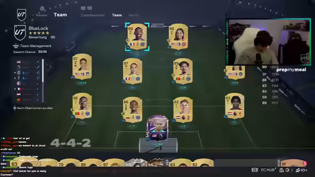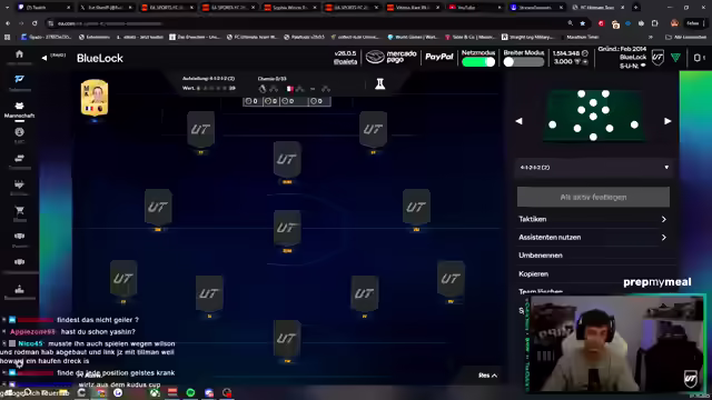01:32:20Es wird festgestellt, dass nur noch ein Tor benötigt wird und ein Neustart erforderlich ist. Ein Blick auf den zweiten Account wird geworfen und überlegt, wer von den Spielern verbannt werden soll. Es werden verschiedene Spieler erwähnt und ihre Fähigkeiten diskutiert. Es wird überlegt, wie viele Rivals-Punkte noch benötigt werden und schnell in Rivals reingeschaut, um die Punkte zu holen, bevor es mit dem Main-Account und dem neuen Team weitergeht. Die Yemi bekommt eine Karte und es wird nach dem aktuellen Team gefragt, wobei der Streamer auf dem zweiten Account mit einem geladenen Team spielt. Es wird überlegt, ob es schneller geht, alleine zu spielen, um die benötigten Punkte zu erreichen. Die roten Zahlen werden erwähnt, was auf Verluste hindeutet. Es wird nach dem besten Hero gefragt, den man ziehen konnte, wobei Matuidi und Ramirez genannt werden. Es wird erwähnt, dass auf dem Main-Account auf 4-4-2 umgestellt wurde, da ein neues Team gebaut wurde. Es wird erwähnt, dass der Gegner von Kai Wirtz und Smith im Sturm steht und es sich um ein Aufstiegsspiel handelt. Es wird überlegt, ob man sich das Spiel ansieht, bevor man ins Bett geht. Es wird erwähnt, dass am nächsten Tag keine Uni ansteht, aber ein Lauftermin geplant ist. Das Ziel ist es, in Division 2 zu kommen, wobei Division 1 als unrealistisch angesehen wird.