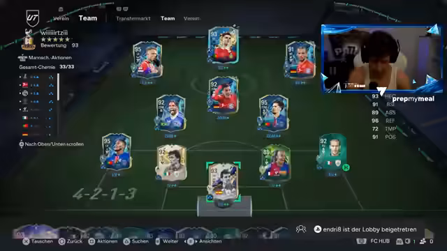 02:57:14Der Streamer spielt Rivals-Spiele im Modus Seasons Pass in EA Sports FC. Er berichtet von unfairen Spielerfahrungen wie hochprozentigen Chancen, die vom Torwart gehalten werden, und einem vermuteten Scripting im entscheidenden Spiel. Des Weiteren werden Handelsstrategien für Karten im Spiel besprochen, bei denen man bestimmte Spieler behalten kann, um sie später in der Premier League zu verwenden.
