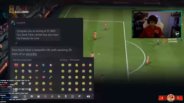 00:43:19Während der Spiele interagiert der Streamer intensiv mit dem Chat und reagiert auf Kommentare und Aktionen der Zuschauer. Ein Gegner, der nach einer Niederlage den Stream verlässt, wird humorvoll als 'Elite' bezeichnet, was zu einem witzigen Dialog führt. Der Streamer betont seine Dankbarkeit für die Unterstützung und zeigt sich begeistert von der Reaktion der Community, insbesondere bei Toren oder besonderen Spielzügen, was eine lockere und unterhaltsame Atmosphäre schafft.