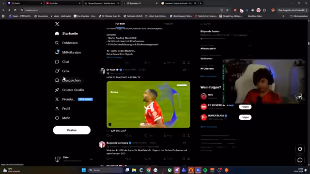 00:10:50Zur Halbzeitpause steht es 2-2. Der Streamer zeigt sich besonders verärgert über die Schiedsrichterleistungen. Er kritisiert mehrere Entscheidungen zu Gunsten von Real Madrid, darunter ein unbestraftes Foul von Rüdiger an einem Spieler von Bayern und ein vermeintliches Handspiel von Real. Aus seiner Sicht wurden klare Fouls von Real nicht geprüft, während Bayern im Nachteil war. Die Halbzeitzusammenfassung fällt durch die intensive Diskussion über die Schiedsrichterentscheidungen und deren Auswirkungen auf das Spielverhalten.