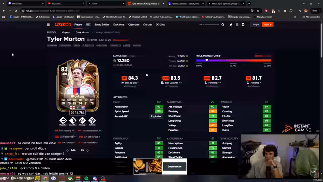 00:02:50Ein zentrales Thema des Streams sind Investitionen in FIFA-Karten. Der Streamer berichtet über den Wahnsinns-Invest in Kandidatenliste, bei dem er 44 Stück zu 70er Angeboten hat, um keinen Verlust zu machen. Er spricht auch über eine Treue-Strategie bei einer bestimmten Karte. Darüber hinaus geht er auf die Silber-Spieler Matsukubo ein, die er als extrem günstig und als potentielles Low-Risk-High-Reward-Investment ansieht, da sie eine Evo erhalten könnten.