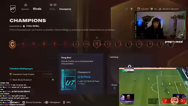 00:37:14Während der Weekend-League-Spiele wird mehrfach über einen Bug gesprochen, der den Spielfluss stört, aber auch Vorteile bietet. Der Streamer erwähnt, er habe in der vergangenen Woche hauptsächlich aufgrund dieses Bugs Cups gespielt. Die Gegner wirken oft wie Bots oder ohne Seele, was die Liga als monoton und unspaßig erscheinen lässt. Trotzdem werden die Siege genutzt, um fortgeschrittene Divisionen zu erreichen, und die erste Halbzeit als besonders angenehm empfunden.