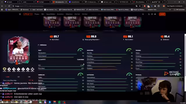 03:42:17Der Streamer bewertet einzelne Spielerkarten und deren Bedeutung für sein Team. Er hebt Leo als den 'verdammten Goat' hervor und bezeichnet ihn als die beste Karte im Team, besser als Pina. Es wird vorgeschlagen, eine Evo-Bewertung einzustellen, damit Zuschauer ihre E-Bus über Kanalpunkte einschicken können. Er äußert seine Unlust auf die Weekend League mit seinem aktuellen Team und kritisiert ein 89er-Mbappé-Team des Gegners, das er als 'Drecksteam' bezeichnet. Trotzdem ist er zufrieden, dass die Leute frühzeitig aufgeben, was ihm hilft, schnell Fortschritte zu machen. Die Rewards der Weekend League werden als schlecht empfunden, was die Motivation mindert. Er diskutiert auch über Playstyles und deren Wichtigkeit, wobei Finesse, entscheidender Pass und Tiki Taka als die besten genannt werden. Technical wird als sein Lieblings-Playstyle auf Außenstürmern bezeichnet.
