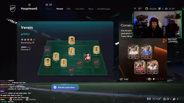 01:21:30Das Team für die Weekend League wird finalisiert und als sehr stark bewertet. Der Streamer erwähnt seine neue Partnerschaft mit Instant Gaming und plant, Guthaben zu verlosen. Er bittet die Zuschauer, seine Partnerseite zu unterstützen. Das Team wird im Detail gezeigt und diskutiert, mit Fokus auf die Chemie und die Stärken der einzelnen Spieler.