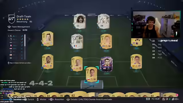 03:32:37Es wird über die Qualität der Packs diskutiert, wobei der Eindruck entsteht, dass die Gold-Profi-Packs nicht lohnenswert sind. Die Rückkehr der Weekend-League-Zusammenstücke wird erwähnt, jedoch ohne großen Unterschied festzustellen. Der Fokus liegt auf dem Draft-Modus, wobei Chesney bevorzugt wird, auch wenn dies einen Chemiepunkt kostet. Es wird angekündigt, dass ein Draft-Spiel abenteuerlich wird. Es wird kurzfristig die Abwesenheit des Streamers angekündigt, der sich kurz auf die Toilette und zum Auto begeben muss. Währenddessen soll Erik den Chat unterhalten, was zu einigen Verwirrungen führt, da Erik nicht sofort reagiert. Tobi hat FIFA bereits aufgegeben und fand es nicht gut. Petri wird getestet und Arne wird für seine Treue gedankt. Der Markt wird als günstig beschrieben, aber Kimmich hat es wieder hoch geschafft.