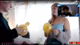 04:35:47Nach einer theoretischen Einführung demonstriert Dina praktische Aspekte ihres Fetischs. Sie zeigt, wie man einen großen Luftballon aufbläst und bietet an, gemeinsam einen platzen zu lassen. Später wird ein riesiger Ballon aufgestellt, in den die Streamerin hineinklettert, um das darinige Erlebnis zu beschreiben. Die Akustik und das Gefühl werden als 'verrückt' und 'trippy' empfunden. Am Ende gehen die beiden in die Stadt, um Werbeballons von Geschäften zu besorgen und dort platzen zu lassen.