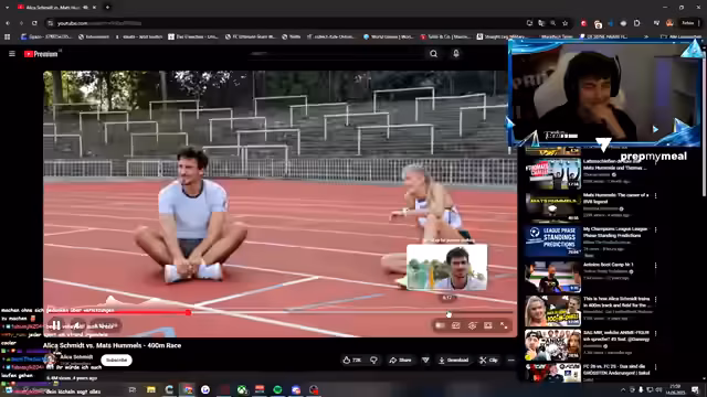 02:12:55Es wird erwähnt, dass eine neue Folge von etwas zum Schlafen geguckt werden soll, möglicherweise über ketogene Ernährung. Der Streamer erinnert sich daran, dass er die Schuhe in Fabi wollte. Joggen wird als Sportart beschrieben, die nicht zum Körperbau des Streamers passt, da er eher breit gebaut ist. Er erzählt, dass er als Kind manchmal etwas auf DSF geschaut hat. Es wird erwähnt, dass Mathe ihn letzte Woche gefickt hat und er morgen Management Basics hat. Der Streamer findet den Sand beim Laufen anstrengend. Er schaut ein Video von jemandem, der einen Einwurf macht und findet das cool. Es wird über die Nummer 7 von Portugal gesprochen, die ein schönes Tor geschossen hat. Der Streamer würde auch mit ihr laufen gehen. Er kommentiert, dass jemand versucht, ihn ranzuziehen, aber er sieht leichtfüßiger aus. Es wird über die Größe und die langen Beine von jemandem gesprochen. Der Streamer sagt, dass 400 Meter eine Höllentour sind und alles weh tut, sogar seine Arme. Er erzählt von seiner einzigen Heimpleite in dieser Saison und dass er noch nie etwas Anstrengenderes gemacht hat als das gerade. Er ist ein bisschen erholt, aber es war wirklich die Hölle. Er muss am Limit bleiben, um dranzubleiben. Er muss jetzt schlafen und sieht die Zuschauer morgen oder Dienstag wieder.