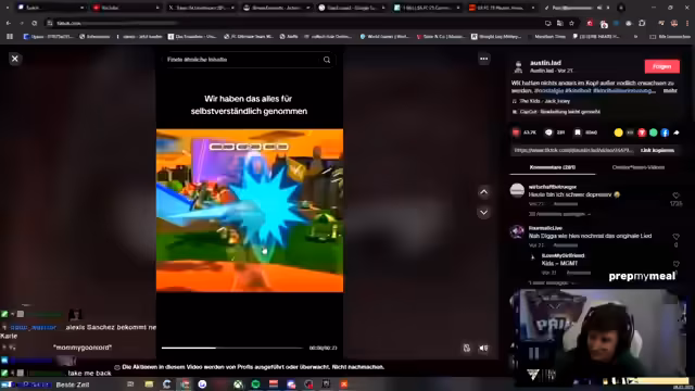 03:16:46Der Streamer kündigt an, Fortnite zu spielen und eventuell noch Reactions zu machen. Er schwelgt in Erinnerungen an frühere Fortnite-Zeiten und erwähnt, dass er von einer Freundin für das Spielen des 'Kinderspiels' kritisiert wurde. Er erklärt, dass er auf dem PC spielt, da die Playstation-Server down sind. Der Streamer kommentiert sein eigenes Spielgeschehen in Fortnite, inklusive seiner Schwierigkeiten beim Zielen und seiner anfänglichen Niederlagen. Er vergleicht sich mit anderen Spielern und äußert seinen Unmut über das Spiel, während er gleichzeitig feststellt, dass es ihm Spaß macht. Der Streamer diskutiert mit dem Chat darüber, warum Fortnite nicht mehr so beliebt ist wie früher und vermutet, dass Skill-Based Matchmaking und fehlende Updates Gründe dafür sein könnten. Er erwähnt bekannte Streamer, die früher Fortnite gespielt haben. Der Streamer landet in verschiedenen Gebieten der Fortnite-Map, interagiert mit anderen Spielern und kommentiert seine Aktionen und die der anderen. Er flucht über seinen Tod im Spiel und vermutet, dass er von einem Stream-Sniper getötet wurde. Der Streamer spielt weiter Fortnite, probiert verschiedene Strategien aus und interagiert mit dem Chat.