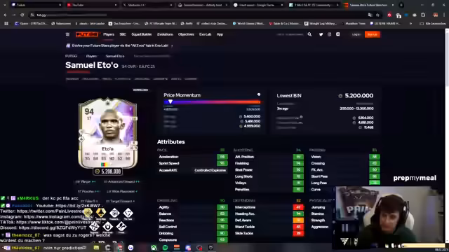 01:32:35Der Streamer spricht über seine aktuelle FIFA Ultimate Team Situation und die Suche nach einem geeigneten zentralen Mittelfeldspieler (ZM). Er diskutiert verschiedene Optionen, darunter Illicic und Stiller, und bewertet deren Playstyles und Chemie. Dabei legt er Wert auf Spieler mit Tiki-Taka Fähigkeiten und guten Passwerten. Er überlegt, welche Spieler er in seine Evolution einbauen soll und welche Playstyles am besten geeignet sind. Des Weiteren wird die Bedeutung von Playstyles wie 'Anticipate' im Mittelfeld hervorgehoben und Karten mit zwei Playstyles bevorzugt. Es wird auch kurz überlegt Musiala in die Evolution zu stecken. Der Streamer erwähnt auch kurz Black Ops 6, aber er kann es nicht spielen. Er spricht über eine Xavi-Simmons-Evo, die er angefangen hat und bald fertig machen müsste. Er diskutiert über die E2-Karte und findet Powershot nicht mehr so nützlich. Er erwähnt auch, dass Nico durch die Eto'o Karte wieder Lust auf FIFA bekommen hat.