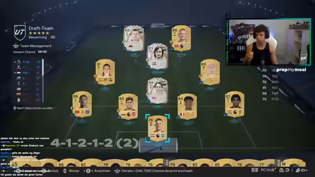 06:33:34Der Streamer plant, in den nächsten Wochen Weekend League zu spielen, um seine Spieler zu bewerten und sein Team zu verbessern. Er diskutiert die verschiedenen Formationen wie 4-4-2 und 4-2-3-1, die im Draft gut funktionieren. Die strategische Ausrichtung des Teams, insbesondere bei der Verteidigung, ist ein wichtiger Punkt, da das Verteidigen in dem Spiel als schwierig gilt.