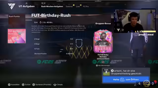 00:00:00Der Stream beginnt mit Begrüßungen an die Chatmitglieder und eine Diskussion über FIFA, insbesondere Ultimate Team. Der Streamer erwähnt, dass er gerade mit dem Goat-Modus fertig ist und Spaß daran hat. Es folgen Fragen zur Performance von Spielern wie Niskas und Safe, und es wird über den FIFA-Patch gesprochen, von dem der Streamer annimmt, dass er das Gameplay geändert hat. Die Weekend-League-Belohnungen werden vorgestellt, die laut Streamer zufriedenstellend sind, aber auch Kritik am Gameplay und der Transferliste geübt.