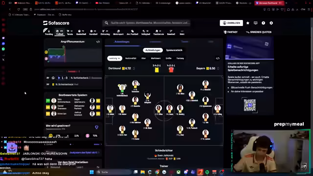 00:01:15Zu Beginn des Streams werden die anfänglichen Unterhaltungen und Gedanken geteilt, die sich hauptsächlich auf andere Bundesliga-Spiele konzentrieren. Dabei werden unerwartete Spielausgänge wie Mainz gegen Leverkusen und Union gegen Bremen thematisiert. Das allgemeine Thema der Fantasy-Liga und das anstehende Spiel Bayern gegen Dortmund werden ebenfalls kurz angesprochen. Parallel dazu gibt es erste Spekulationen über die Aufstellungen und die allgemeine Erwartungshaltung zum heutigen Spieltag.