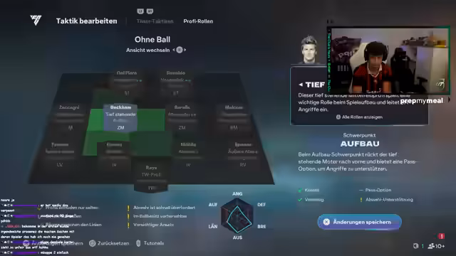 00:00:40Zu Beginn des Streams wird das aktuelle Team vorgestellt. Alle Spieler befinden sich auf der Transferliste, um Kapazitäten für Squad-Building zu schaffen. Der Streamer hat sich für eine enge Raute (4-2-2-2) entschieden, um Musiala auf der Zehner-Position und Isaac im Angriff zu kombinieren. Der Fokus liegt auf Draft-Wins, um durch den Gewinn von Pack-Preisen Coins zu generieren. Bereits wurden 14 Drafts gewonnen und einige wertvolle Spieler im Draft gezogen, die für den Transfermarkt genutzt werden können.