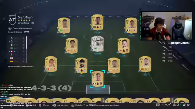 02:49:35Es werden Draft-Erlebnisse geteilt, darunter das Ziehen von Spielern wie Puteas und Hakemi. Der Streamer berichtet von Finalteilnahmen und bewertet sein Team. Es wird über die Anpassung der Belohnungen für Siege diskutiert und die Qualität der Packs in Frage gestellt. Der Streamer äußert Enttäuschung über den Inhalt eines 100k-Packs und bewertet einzelne Spieler. Es wird über den Wert von Spielern auf dem Markt gesprochen und sich über unerwartete Preissteigerungen gewundert. Der Streamer äußert Unzufriedenheit mit seinem Draft und vermutet, dass die Auswahl der Spieler von der IP-Adresse abhängt. Es wird über die Schwierigkeit, bestimmte Spieler wie R9 oder Pelé zu bekommen, diskutiert. Der Streamer kritisiert die Liga-Zusammenstellung seines Drafts und überlegt, das Spiel zu verlassen. Es wird über das Fehlen von Icons im Draft gesprochen und die Chemie der Mannschaft bemängelt. Der Streamer vergleicht das Spiel mit einem Puzzle und sucht nach Möglichkeiten, die Chemie zu verbessern. Es wird sich über die Spielmechanik und unfaire Vorteile des Gegners beschwert, was zu Frustration führt.