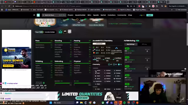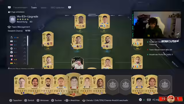 05:03:02Der Streamer analysiert verschiedene Spieler-Evolutionen und deren Einfluss auf das Spiel. Er überlegt, ob er seine Entscheidung für eine bestimmte Entwicklung revidieren kann und welche Stats für Kunze optimal wären. Er zeigt sich beeindruckt von dessen Potenzial, auch ohne bestimmte Upgrades. Im Gespräch mit dem Chat erörtern sie unterschiedliche Strategien, wie sie Spieler wie Ibabo am besten ins Team integrieren können, um die bestmögliche Chemie zu erzeugen.