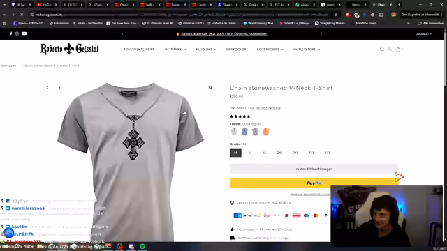 04:08:35Der Streamer bemerkt, dass Messi seinen Madden-Spieler umgehauen hat, was zu einer Diskussion über die Qualität von Madden führt. Es wird über den Namen des Gegners, 'Kopfnuss Kali', und dessen Verbindung zu 'Karl Maddox' spekuliert, wobei der Name Maddox als ungewöhnlich und nach RTL 2 klingend kritisiert wird. Die Unterhaltung schwenkt zu den Geissens, deren Hund ebenfalls Maddox heißt, und der Streamer wundert sich über das Wissen des Chats über RTL 2. Es wird auch über die Modemarke 'Uncle Sam' gesprochen, die fälschlicherweise Robert Geissini zugeschrieben wird. Die Qualität und die Preise von Robert Geissinis Marke 'Roberto Geissini' werden kritisch hinterfragt, insbesondere die hohen Preise für scheinbar einfache Kleidungsstücke und die Verfügbarkeit von extremen Größen wie 5XL. Die Diskussion über die Marke endet mit der Entdeckung einer 'Eierkocher'-Kategorie im Shop, was für Belustigung sorgt.