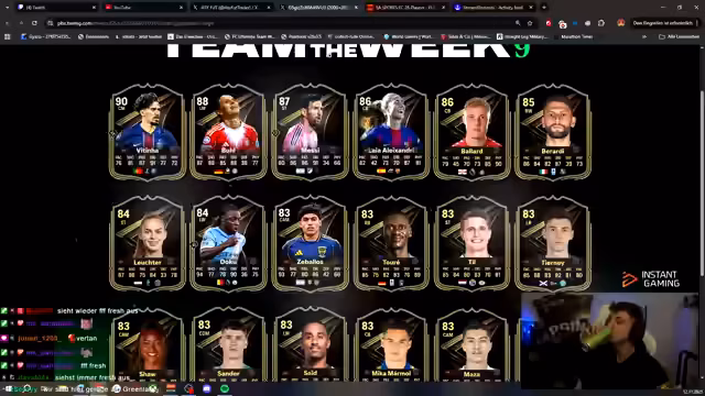 00:14:39Der Streamer treffe Kaufentscheidungen und offenbare ein gravierendes Problem: Sein Speicher im FUT-Club sei voll. Er wolle eine Finanzspritze von "Niskas" benötigen, um neue Karten kaufen zu können. Er ziehe Packs, habe aber keine Platz für weitere Spieler. Er versuche, Doku-Karten zu snipen und diskutiere den Preis dafür. Der Streamer verliere sich im Prozess des Pack-Ziehens und des Handels auf dem Transfermarkt.