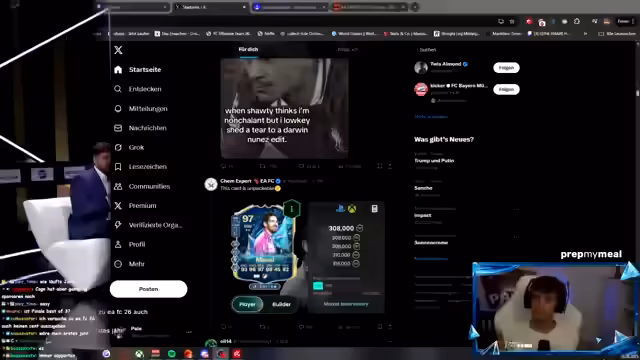 01:40:59Die Gameplay-Sitzung endet mit dem Gefühl, gegen dieselbe, nicht anspruchsvolle Aufstellung spielen zu müssen. Danach geht es zurück zur Kickbase-Liga, wo die Entscheidung über die Transfers von Kimmich und Upamecano die nächsten Schritte bestimmt. Es werden diverse Spieler und deren Marktwerte analysiert. Die Saison auf Kickbase steht kurz vor dem Finale, und der Streamer formuliert eine klare Philosophie, lieber teure, aber sichere Top-Spieler zu holen, als riskantere, günstigere Alternativen.