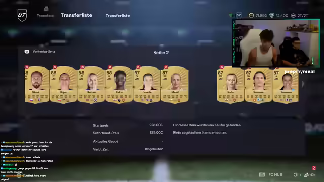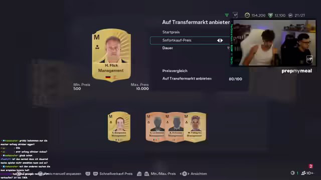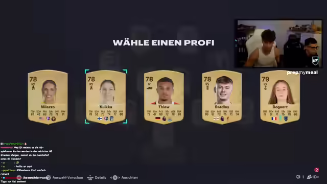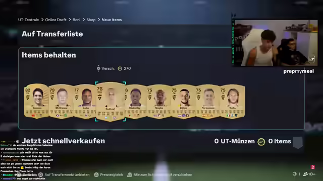 01:02:04Der Streamer zieht Pina, bedauert aber ihre hohen Kosten. Er startet Trading auf einem zweiten Account und nimmt Bergwahl. Es wird über einen gefixten Draft spekuliert. Der Streamer äußert den Wunsch nach Dias und freut sich über ein geiles Ding im Spiel. Er spricht über taktische Entscheidungen und die Schwierigkeit, das Spiel zu beeinflussen, wenn das Momentum gegen ihn läuft. Es wird über verschiedene Spieler diskutiert, darunter Liberi 71. Der Streamer wechselt zur Bundesliga-Konferenz und baut ein Team. Er äußert Frustration über Lupfer, die danebengehen, und Torhüter, die gut halten. Es wird über Precision Shooting gesprochen und die Notwendigkeit, dies zu lernen. Der Streamer diskutiert die Kosten von Gravenberg und die Schwierigkeit, gute Drafts zu bekommen. Er tauscht sich mit dem Chat über verschiedene Spieler aus und äußert seine Vorlieben und Abneigungen. Dabei werden auch taktische Überlegungen und die Bedeutung von Chemie im Team besprochen. Der Streamer erwähnt, dass er seit fünf Drafts schlechte Teams hat und dass Itachi keine Tipps geben soll.